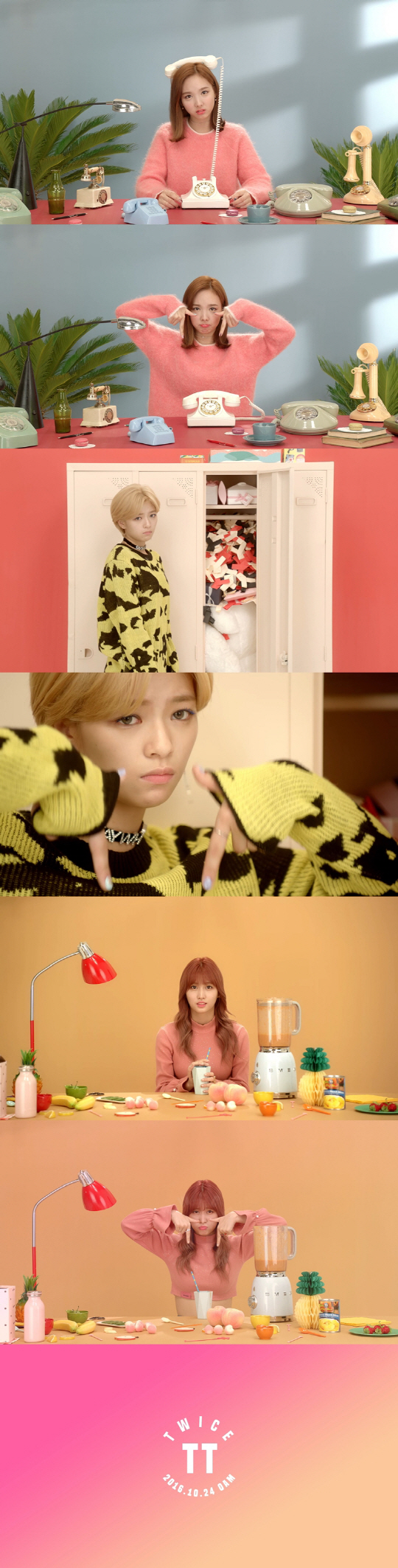 한편 컴백을 일주일 앞둔 17일 0시를 기해 네이버V앱와 TV캐스트를 통해 첫 티저 'TT필름'의 나연 정연 모모 편을 공개했다. 티저 영상에서 나연은 전화기 앞에서 누군가의 연락을 기다리는 깜찍함을, 정연은 몰래 선물을 주기 위해 노력하는 발랄함을, 모모는 누군가를 위한 과일 주스를 만들고 있는 귀여운 매력을 발산했다.