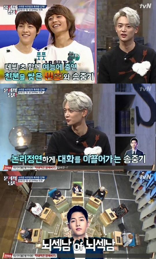 [스포츠조선닷컴 이지현 기자] 샤이니 민호가 배우 송중기를 '뇌섹남'으로 꼽았다.