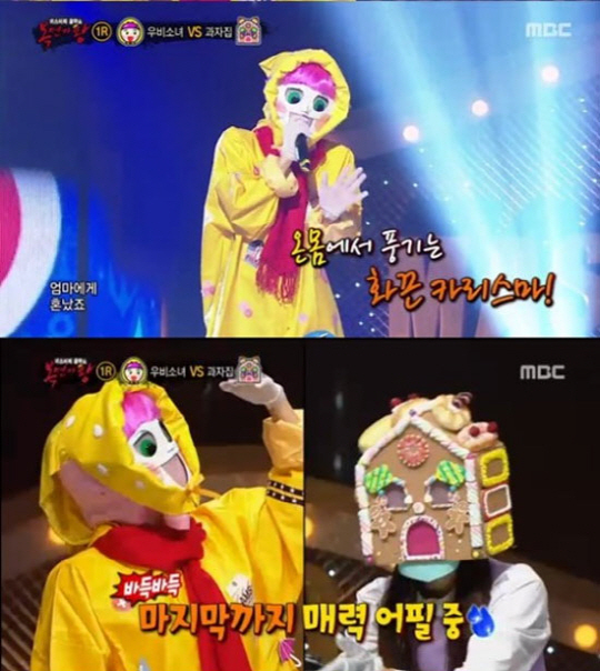 이날 새로운 가왕에 도전하는 8인의 스타들이 출연했다. 그 중 '하늘에서 비가 내려와요 우비소녀'가 시원시원한 목소리로 시청자들의 눈길을 끌었다. 특히, 이날 '우비소녀'와 '과자집'의 대결 결과발표 장면은 순간 최고 1분 시청률이 22.3%까지 상승하며 시청자들의 큰 관심을 보였다. '우비소녀'와 '과자집' 듀엣곡을 들은 판정단 조장혁은 "성대가 '살아있다'" 라며 극찬했고, 김구라는 "이분이 팝콘 잡습니다"라고 예측하며 다음 경연을 더욱 기대하게 만들었다.