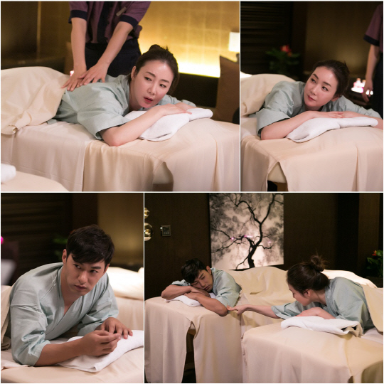 공개된 사진 속에는 나란히 커플 마사지를 받고 있는 차금주, 함복거의 모습이 담겨 있다. 은은한 조명 아래 두 사람은 똑같은 옷을 입고, 똑같은 자세로 침대 위에 누워있다. 특히 함복거의 팔을 손가락으로 콕 찌르고 있는 차금주의 모습은 티격태격 다투던 이전과는 전혀 다른, 알콩달콩한 분위기로 시선을 강탈한다.