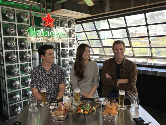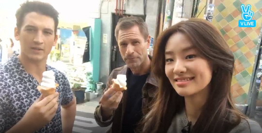 [스포츠조선닷컴 정유나 기자] 모델 겸 배우 스테파니 리와 할리우드 배우 마일즈 텔러 그리고 아론 에크하트가 서울에서 만났다.