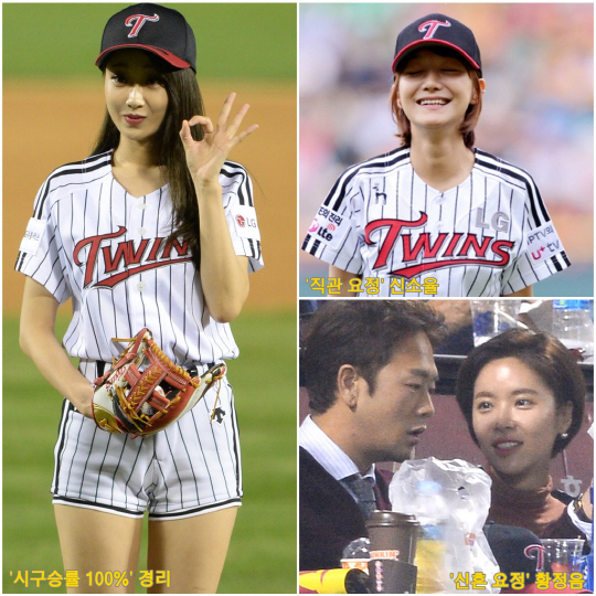 '깨소금' 신혼을 만끽하고 있는 황정음 역시 남편과 함께 3-4차전을 잠실벌에서 직관했다. 16일 3차전 현장에서 자신의 인스타그램에 직관 인증샷을 찍어올리고, 'LG/넥센 두둥~~ 승리의 요정'이라는 한줄을 달았다. 17일에도 그녀는 어김없이 잠실야구장에 출동하는 팬심을 과시했다. 이번에도 남편인 프로골퍼 이영돈씨와 함께였다. 'LG팬' 남편의 설명에 귀를 기울이며 해맑은 미소와 함께 경기를 지켜보는 모습은 잠실벌 취재진의 뜨거운 스포트라이트를 받았다. LG의 승리와 동시에 '황정음' 이름 세글자가 실시간 검색어 1위를 휩쓸었다.