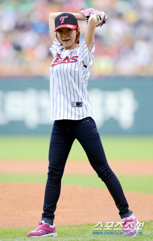 17일 넥센 히어로즈와 LG 트윈스의 준플레이오프 4차전, 3차전 전적 2승1패로 LG가 앞선 상황 나인뮤지스 경리가 시구자로 나섰다. LG줄무늬 유니폼에 핫팬츠로 섹시 라인을 유감없이 드러내며 상대 기선을 제압하더니 익숙한 정통 좌완의 와인드업까지, 환상의 시구를 선보였다.