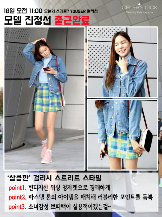 이른 아침에도 청초함을 자랑하는 모델 김세희. 기본 아이템을 믹스해 스타일리시하게 꾸민 출근길 패션이 멋진데요. 깔끔한 화이트 티셔츠에 부츠컷 팬츠에 밀리터리 터치로 업데이트 된 점퍼를 가볍게 걸쳐줍니다. 여기에 모델들의 잇템 블랙 볼캡과 스포티브한 스니커즈로 시크한 걸크러쉬 스타일을 마무리해줬어요.