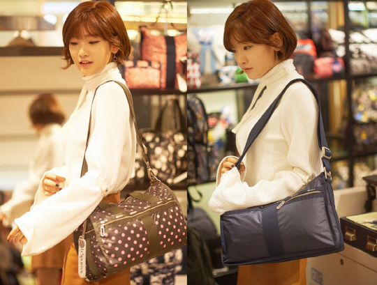 여배우 박소담이 신세계 강남점 백화점에서 포착됐다. 이날 박소담은 아이보리 컬러의 와이드 커프스 니트와 브라운 컬러의 스커트로 가을 여신룩의 정석을 보여줬다. 특히 가을 분위기를 배가시켜 줄 톤 다운된 컬러의 레스포색 위켄더백을 착용해 피크닉룩을 제안해 눈길을 모았다. 또한 다채로운 패턴의 가방을 메고 거울 앞에서 발랄한 느낌을 연출해 보이기도 했다. 사진 속 박소담이 착용한 가방은 레스포색 16 F/W 에센셜 컬렉션으로 이전 레스포삭 제품들에 비해 가벼워진 것이 특징이다.