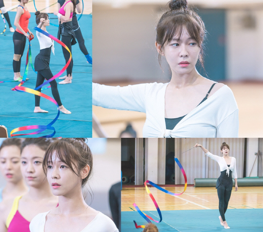 이와 관련 경수진이 빚은 듯 날렵한 몸매의 리듬체조 선수로 완벽 변신한 모습이 공개돼 관심을 집중시키고 있다. 경수진이 리듬체조 연습복을 입은 채 마루 위에서 색색의 리본을 돌리며 연습에 매진하고 있는 것. 운동으로 다져진 명품 라인과 한 몸처럼 익숙한 리본의 조화가 마치 실제 운동선수의 연습 광경을 보는 듯한 착각을 불러일으킬 정도다.
