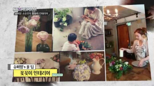 소유진이 공개한 첫번째 살림 꿀팁은 집에서 평소에 활용하기에 좋은 꽃꽃이 인테리어였다. 이 날 방송에서는 MC들과 함께 테이블에 놓을 수 있는 센터피스를 만들어보았다. 소유진이 꽃꽃이를 시작하게 된 계기는 바로 둘째 태교 때문이었다고. 둘째를 가지고 딸이기를 바라는 마음을 담아 시작했다는 꽃꽃이는 이제 수준급이 되었다. 거침없는 손길로 아름다운 꽃들을 균형감있게 배치하는 모습에서 고수의 향기가 느껴졌다.