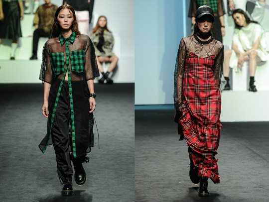 역시 눈에 띄는 과감한 패턴에는 과감한 소재를 더해 스트리트적인 요소를 극대화시켰다. 쨍한 원색의 글랜체크는 메쉬 망사 레더와 함께 적용되는데 소재의 시즌리스도 눈 여겨 봐야 할 변화.