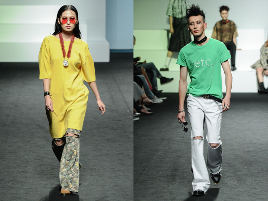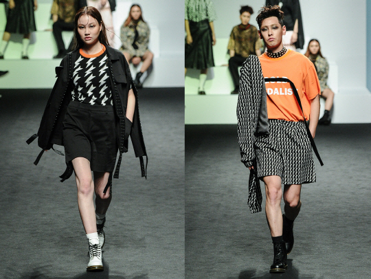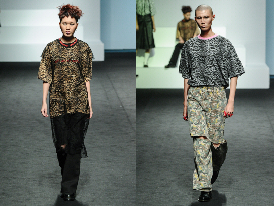 빈티지하면서도 강한 스트리트 무드가 느껴지는 패턴은 이번 로켓런치 런웨이의 가장 큰 매력이기도 했다. 자잘한 번개 패턴에 이어 레오파드 역시 좀 더 락킹하게 변형되어 재미를 느낄 수 있었다. 패턴의 리듬감을 통해 텍스처가 느껴지는 착시효과를 일으키는 등 신선한 디테일을 선사했다. 또 레오파드와 밀리터리를 믹스해 그동안 볼 수 없었던 과감한 조합을 제시하는데, 대신 적당히 톤 다운 시켜 비교적 부담스럽지 않게 보여 주었다.