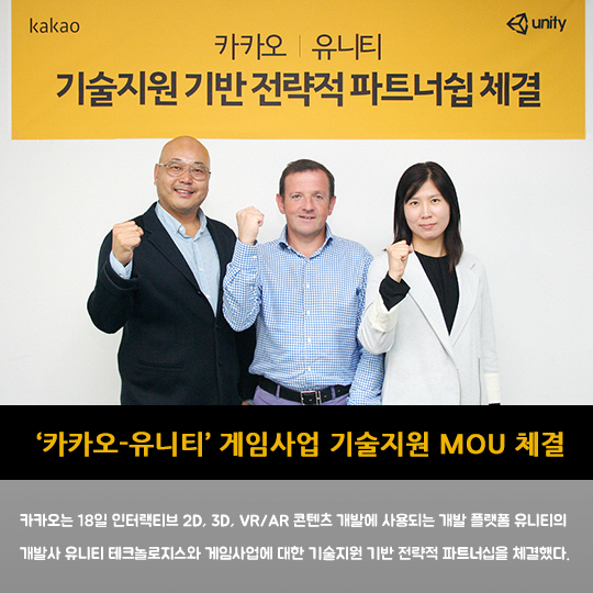 - '카카오-유니티' 게임사업 기술지원 MOU 체결