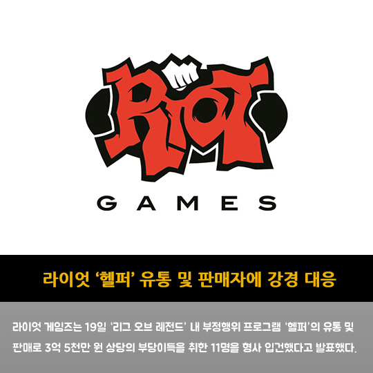 - 라이엇 '헬퍼' 유통 및 판매자에 강경 대응