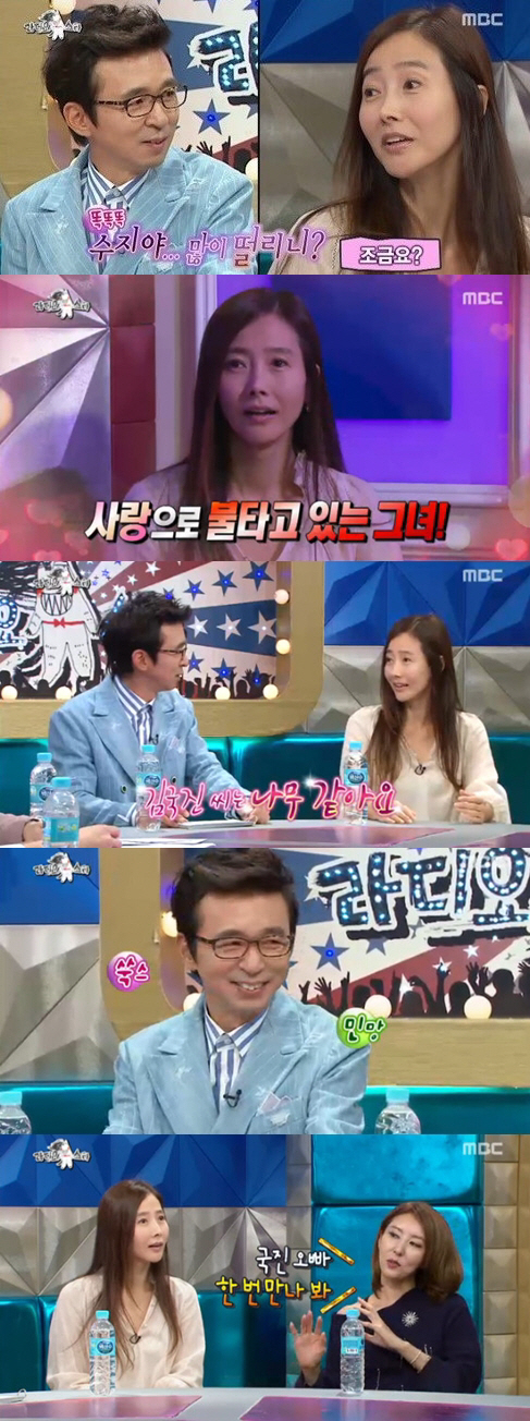 [스포츠조선닷컴 정유나 기자] 김국진-강수지 커플이 러브스토리를 대 방출, '라디오스타'를 핑크빛으로 물들였다.