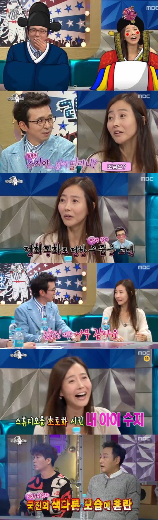 강수지는 '라디오스타'에 출연한 이유에 대해 "김국진이 이전에 '날 출연시키도록 하겠다'고 했는데, 그 말을 지켜주려고 나왔다"고 말했다. 이어 "김국진은 한 번 뱉은 말은 지키는 사람이다"라고 치켜세웠다.