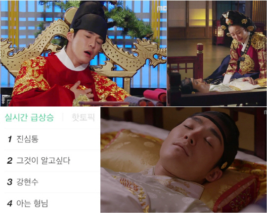 한편 45회에서는 명종이 자신이 언제 죽을지 모르는 상황임을 알게 된 후 옥녀(진세연 분)를 태원(고수 분)에게 부탁하는 장면이 그려지며 러브라인에 대한 궁금증을 한껏 증폭시켰다. 더욱이 역사적으로 명종이 34세라는 이른 나이에 일찍 단명한 것으로 알려져 있어 극 중에서 명종의 죽음이 어떻게 그려질지 궁금증이 한껏 증폭된다. narusi@sportschosun.com