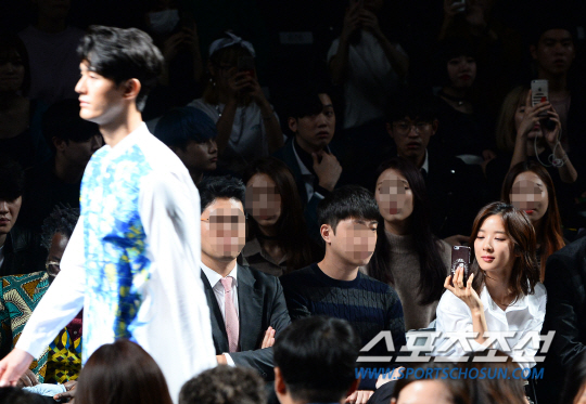 이날 이청아는 화이트 셔츠와 도트 롱 스커트로 깔끔하면서도 발랄한 차림으로 등장했다. 핑크 립과 아이 섀도로 은은한 포인트를 준 메이크업 역시 사랑스러웠다. 남자친구에게 힘을 보내기엔 최고의 선택이다. 이청아는 쇼 장에 들어서자마자 런웨이가 가장 잘 보이는 프론트에 자리를 잡았다.