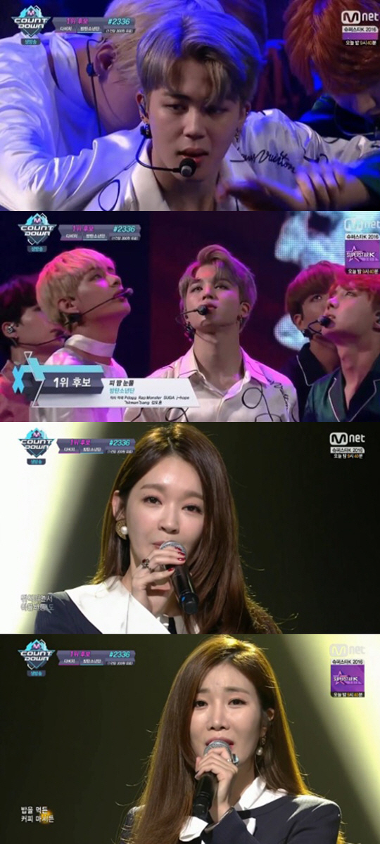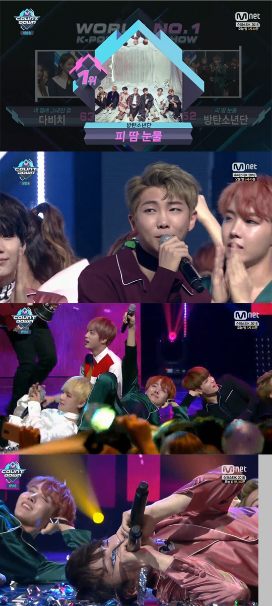 [스포츠조선닷컴 김영록 기자]방탄소년단이 '피 땀 눈물'로 음악방송 2관왕 째를 차지했다. 걸그룹 아이오아이(I.O.I)는 상큼발랄한 컴백 무대를 선보였다.
