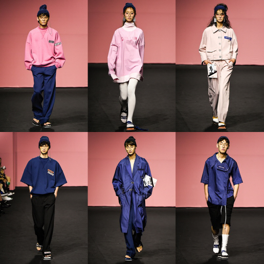 머스타드 옐로 컬러의 트러커 재킷에는 지퍼의 일부를 잘라 붙인 듯한 장식을 가슴에 부착한 뒤에 브랜드 명을 새겨 넣었고 대담한 단추 디테일을 보이도록 하여 의도적으로 투박한 느낌을 주었다. 여기에 군번줄을 떠오르게 하는 위트 넘치는 디자인의 이어링과 너드 스타일의 커다란 안경테, 직접 제작한 슬리퍼 등의 액세서리를 착용한 모델들이 런웨이를 걸었다.