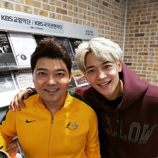전현무는 21일 자신의 인스타그램에 "늘 한결같은 민호♡ 샤이니가 꾸준한 건 변치않는 인성 덕분인 듯. '해투' 말고도 다른 프로에서 꾸준히 만나자"라는 글과 함께 한 장의 사진을 게재했다.