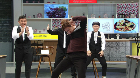 이날 오상진은 30여 분에 걸쳐 공기밥 네 공기를 먹어치웠다. 이어 원활한 소화를 위해 크럼프 댄스를 췄다. 그러면서 "평소 싫은 소리를 잘 못해 쌓인 스트레스를 이 춤으로 풀어낸다"고 말했다. 성난 고릴라처럼 돌변해 몸부림에 가까운 춤을 추는 오상진으로 인해 스튜디오가 발칵 뒤집어졌다는 후문이다.