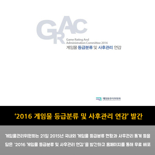 - '2016 게임물 등급분류 및 사후관리 연감' 발간