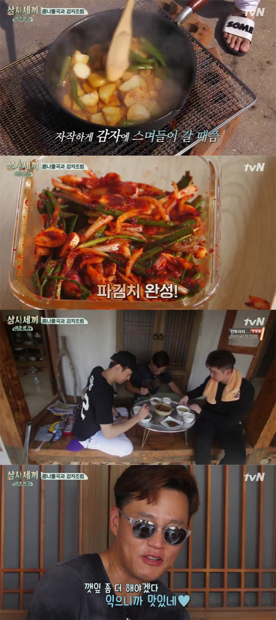 아침은 콩나물국과 감자조림이다. '요리천재' 에릭은 능숙하게 재료를 준비하고 윤균상에게 지시를 내렸다. 중간점검으로 맛을 본 후 양념을 더하는 그는 "먹으면서 간을 보는 스타일이다"라며 자신의 요리 스타일을 설명했다.