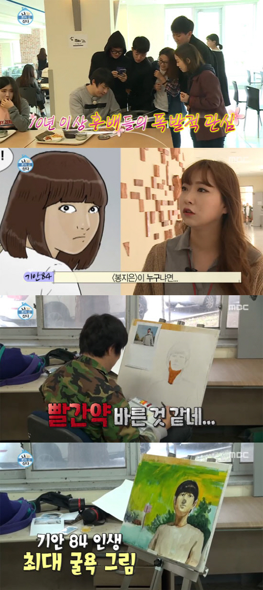 모교를 찾은 기안84는 구내식당을 먼저 찾았다. 후배들의 시선을 한 몸에 받은 기안84는 많은 후배들에게 둘러싸여 사진을 찍었다. 많은 관심에 기안84는 "언제 한 번 그런 대접을 받아보겠어요"라며 쑥스러운 듯 미소를 보냈다.