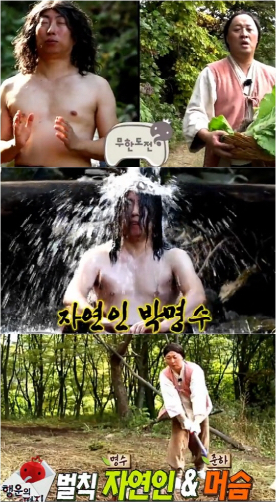 22일 방송되는 MBC '무한도전'에서는 '자연인 박명수&머슴 정준하' 특집이 그려진다. 이는 앞서 '행운의 특집' 실패로 인한 박명수와 정준하의 벌칙을 합한 것으로, 두 미션이 만나 하나의 콩트가 완성돼 기대를 모은다.