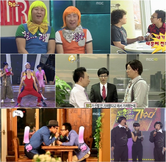 이 뿐 아니라 '무한상사' 속 막간을 활용한 코너 '행쇼'에서는 하와 수가 감탄사만 사용하는 패널로 등장해 또 한 번 케미를 발산했다. 무엇보다 '무한도전' 최고의 특집 중 하나로 꼽히는 '토요일 토요일은 가수다' 또한 박명수와 정준하가 함께 기회한 것.
