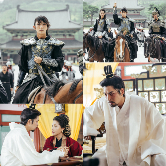 이번에 공개된 사진 속에는 4황자 왕소와 그의 사람인 13황자 백아(남주혁 분), 대장군 박수경(성동일 분)이 갑옷을 입고 황궁 돌격을 하기 전 모습이 담겨있다. 피바람이 몰아치는 황궁과 자신의 사람을 지키기 위해 나선 이들의 결연한 의지가 눈에 띄는 가운데, 광기에 휩싸여 제 한 몸 가누지 못하고 비틀대는 광기어린 정종의 모습이 대조를 이뤄 시선을 강탈한다.