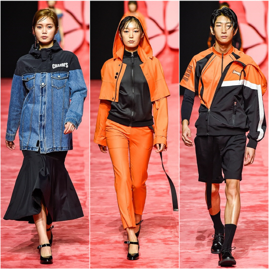 감각적인 스포티룩 20대인 디자이너의 감각은 변형된 스포티룩을 통해 단적으로 드러났다. 참스는 그동안 일관적으로 활동성이 강한 트레이닝복을 응용한 아이템들을 선보여왔다. 이번 시즌은 더욱 다채롭고 재기발랄하게 변형되어 매니아층의 관심을 끌었다. 데님과 트레이닝 후드가 결합된 재킷, 거기에 매치한 머메이드 스커트, 트레이닝 수트에 매치한 숏 후드 재킷, 한쪽 소매를 벗어 던진듯한 오렌지 배색 재킷은 브랜드가 사랑받았던 이유인 자유분방함과 웨어러블함을 잘 녹여냈다.