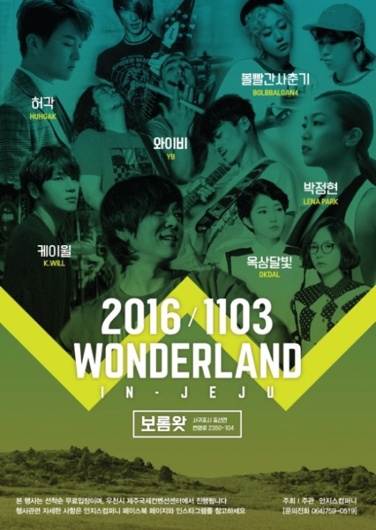 제3회 '원더랜드 인 제주는' 오는 11월 3일 제주도 보롬왓에서 열린다. 제주도 청년들이 뭉친 문화공연기획사 안지스 컴퍼니에서 기획한 '원더랜드 인 제주'는 이번에도 무료 공연으로 진행된다.