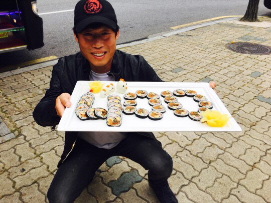 유해진은 팬들에 감사의 마음을 담은 인증샷을 깜짝 공개했다. 작품 속에서 김밥집 아르바이트를 하는 형욱의 모습을 연상시키듯 김밥을 들고 있는 유해진의 모습이 눈길을 끈다.
