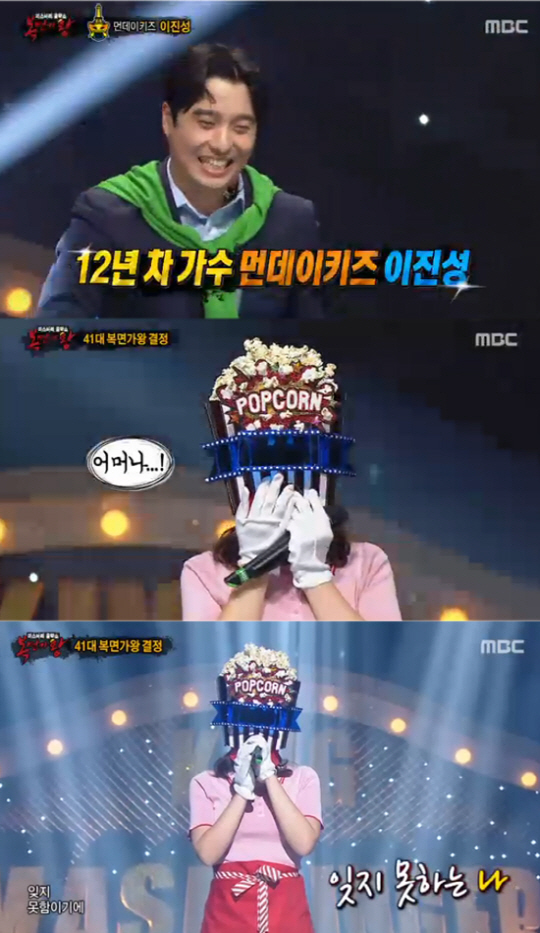 [스포츠조선닷컴 정안지 기자] '복면가왕' 팝콘소녀가 2연승을 거둔 가운데 에펠탑의 정체는 먼데이키즈 이진성이었다.