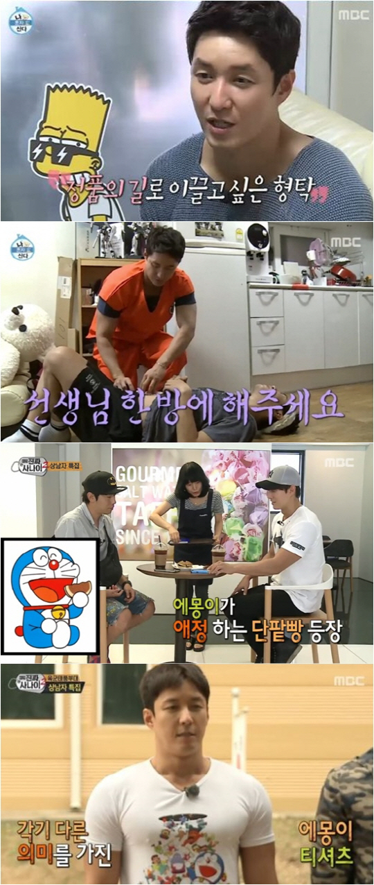 심형탁의 활약은 이게 끝이 아니었다. 지난 23일 방송되는 MBC '일밤-진짜 사나이'의 상남자 특집에서는 대한민국을 대표하는 상남자 김보성, 심형탁, 윤형빈, 이시언, 성혁, 조타 등 총 6인이 신병교육대에 입소했다. 이 가운데 심형탁은 도라에몽 캐릭터가 그려진 티셔츠를 입고 등장해 초반부터 시선을 강탈했다.