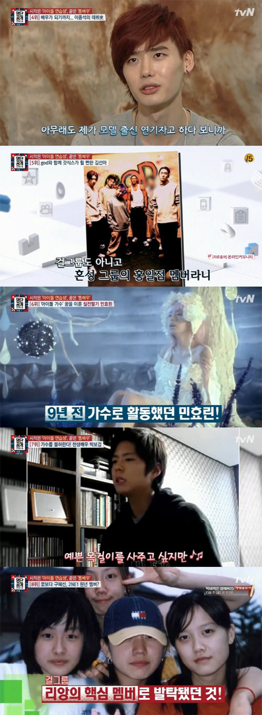 6위 민효린이다. 빅뱅 멤버 태양과 공개 열애 중인 민효린 역시 연인과 함께 가수가 될 뻔 했다. '슈퍼 J모델'을 통해 얼굴을 알린 민효린은 MBC '트리플'을 통해 연기에 처음 도전했다. 각종 광고계 블루칩으로도 급부상 한 민효린은 과거 길거리 캐스팅이 되어 오디션을 보고 JYP의 연습생이 됐다. 대구에서 서울로 매일 통학을 하며 아이돌 연습생으로 최선을 다 했지만, 부모님의 사업이 어려워 지면서 7개월 만에 꿈을 접었다. 성인이 된 후 다시 꿈에 도전해 9년 전 가수로 활동을 했다. 최근에는 KBS2 '슬램덩크'의 '언니쓰'를 통해 못다 한 꿈을 이루기도 했다.