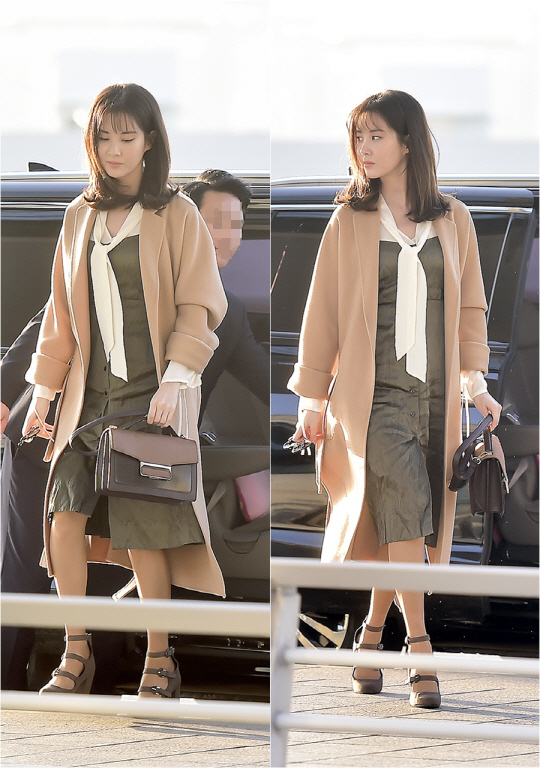 소녀시대 서현, 벌써 데뷔한지 9년차. 이제 서현은 어린 막내, 소녀티를 벗고 성숙하고 우아한 패션으로 자신만의 스타일을 만들어가고 있다. 그런 그녀가 24일 행사를 위해 중국 선전으로 출국했다. 이 날 서현은 페미닌한 롱코트 룩으로 가을 패션을 완성했다.