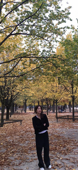 또 다른 사진에는 낙엽이 가득한 공원에 서서 내추럴한 매력을 드러낸 송혜교의 모습이 담겼다. 꾸미지 않은 자연스러우면서도 시크한 모습이 마치 파리지엥을 연상케 한다.