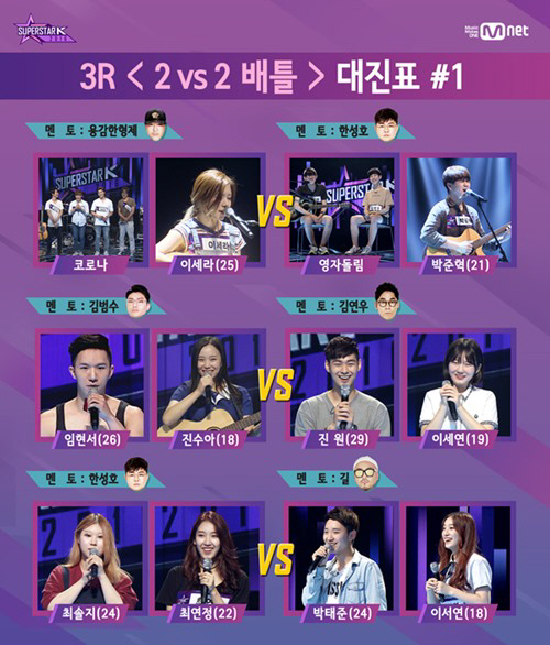 이외에도 명품 보컬 최솔지-소울보이스 최연정 팀과 개리 도플갱어 박태준-다재다능한 팔망미인 이서연 팀이 맞붙어 한 치의 양보 없는 배틀을 펼칠 예정. 또, 풍부한 음악적 감성을 가진 밴드 코로나-독보적인 음색의 소유자인 이세라 팀과 10대의 섬세한 감성으로 눈도장을 찍은 영자돌림-싱어송라이터 대표 주자인 박준혁 팀의 대결도 기대감을 높이고 있다.
