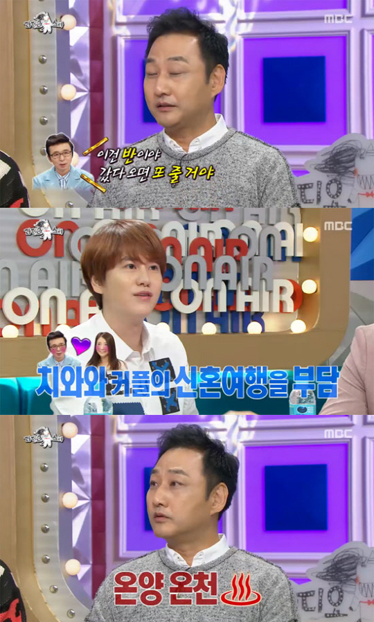 [스포츠조선닷컴 이지현 기자] 개그맨 김수용이 김국진, 강수지 커플의 신혼여행지로 '온양온천'을 꼽았다.