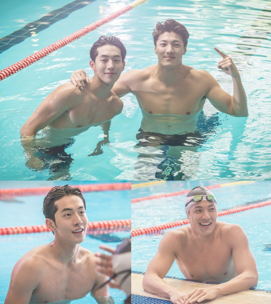 두 남자의 테스토스테론이 폭발한 현장은 지난달 29일 서울시 종로구의 한 스포츠센터에서 진행됐다. 특히 남주혁은 이날 오후 내내 운동장 구보 장면을 촬영한 데 이어 늦은 밤이 되어서야 수영장으로 이동한 상태. 밤 11시가 다된 시간이었지만 남주혁은 지칠 줄 모르는 표정으로 수영장에 등장, 수영장의 덥고 습한 환경과 싸우고 있는 스태프들의 사기를 끌어올렸다.