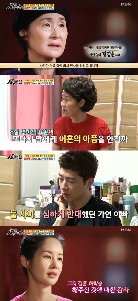 26일 첫 방송된 MBN '사돈끼리'에서는 김가연-임요환 부부가 8세 나이 차이를 극복하고 결혼을 허락받기까지 힘겨웠던 과정을 떠올렸다.
