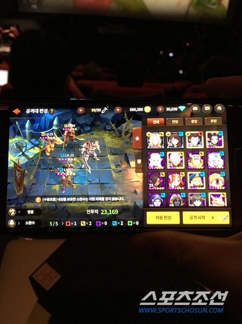 기본 성장은 가로형 스테이지 방식이고, 주인공 캐릭터와 5명의 소환수와 함께 전투를 하게 됩니다. 소환수는 5가지 역할로 구분되어 있어 온라인게임의 파티를 구성하는 느낌으로 세팅할 수 있었습니다.