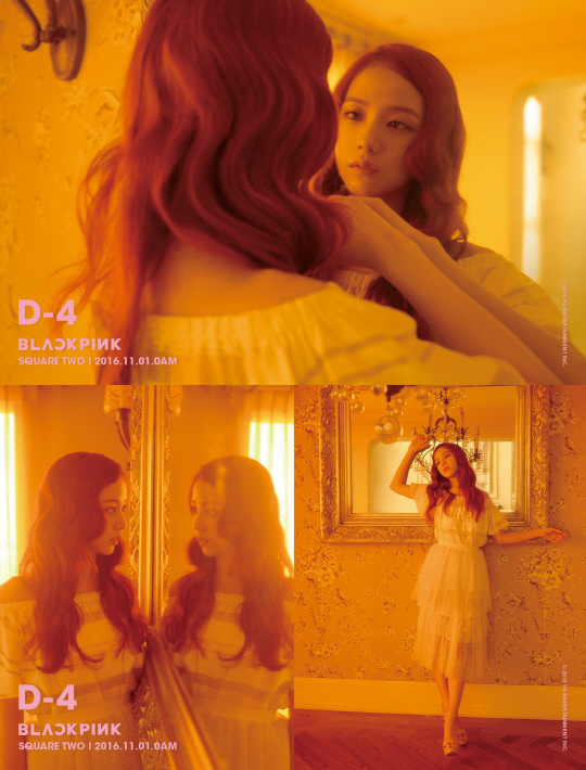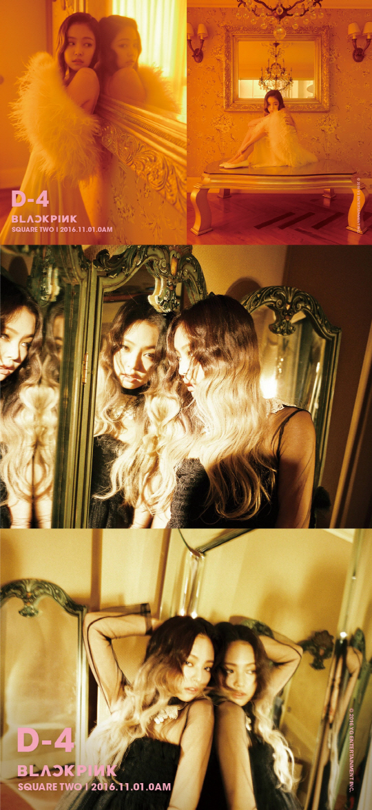 이번에 공개된 15컷은 고혹적이면서도 섹시한 멤버들의 미모가 인상적. 지수는 긴 웨이브 머리와 화이트 톤의 드레스로 고급스러운 청순미마저 드러내 눈길을 끌었고 제니는 이와 반대로 블랙톤의 의상을 입고 강렬한 눈빛으로 매력을 드러냈다. 리사와 로제는 긴 머리를 늘어뜨린 채 몽환적인 분위기를 풍긴다.