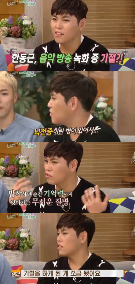 '해피투게더' 가수 한동근이 뇌전증 투병 사실을 밝혔다.