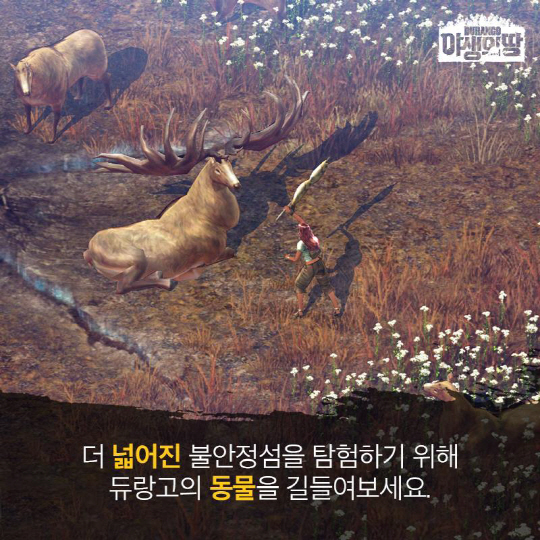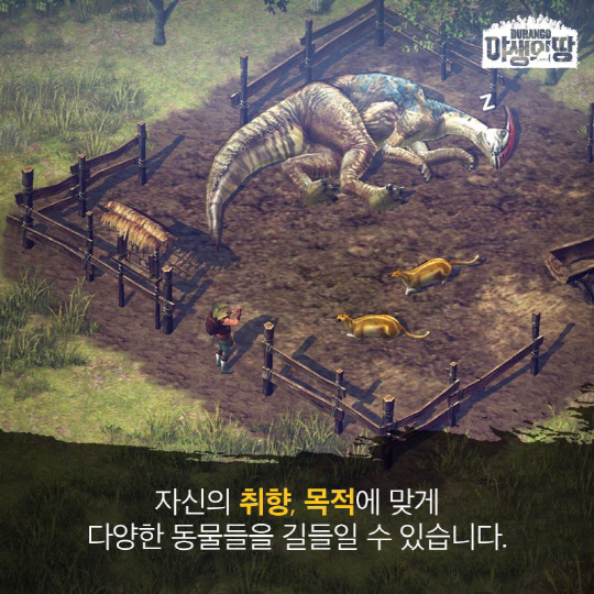 그리고 드디어 공개된 '길들이기 시스템'. 과거 듀랑고의 프로모션 동영상과 오프닝에는 유저들이 공룡을 타고 박진감 넘치게 이동하는 화면이 있었는데, 새롭게 동물을 길들일 수 있다고 발표됐다. 이동 수단은 물론이고 식량, 아이템 등으로 다양하게 활용될 것으로 보인다.