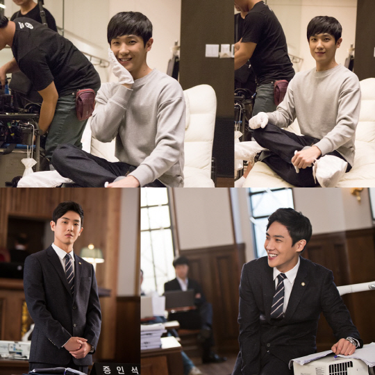 이어진 사진 속 이준은 법정신을 촬영 중이다. 법정신은 오랜 시간 공을 기울여야 하는 만큼, 다른 장면보다 두 배는 힘든 촬영으로 유명하다. 그럼에도 불구하고 이준은 환한 웃음으로 현장을 활기차게 만들고 있다.
