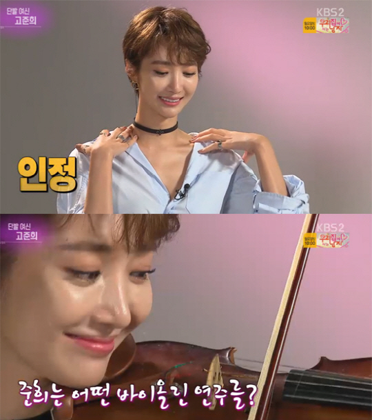 고준희는 "바이올린이 전공까지는 아니지만 실제로 오랜 시간 배웠다"면서 "앞으로는 망가지는 역할이라든지 몸개그 할수 있는 웃긴 역할을 하고 싶다. 전 개그 욕심이 있는데 사람들은 안웃기다고 하더라"라고 덧붙여 웃음을 유발했다.