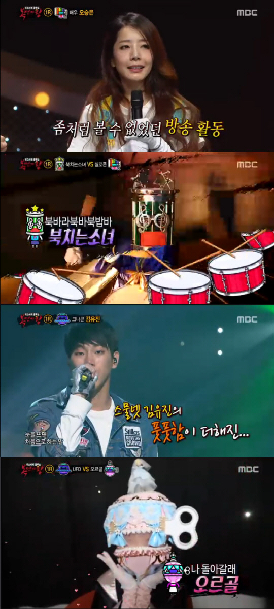 [스포츠조선닷컴 김준석 기자] '복면가왕' 1라운드에서 아쉽게 패한 출연자들은 배우 오승은, 크나큰 김유진, 유도영웅 이원희, 개그맨 박수홍이었다.
