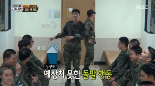 그는 양팔을 좌우로 흔들면서 "난나나 난나나"라고 노래를 불렀다. 시종일관 무표정으로 진지하게 춤을 추는 심형탁에게 소대장은 "장기를 하라고 했지, 재롱 피우라고 했느냐"고 당황해 했다.