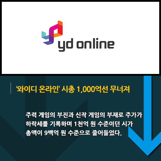 주력 게임의 부진과 신작 게임의 부재로 주가가 하락세를 기록하며 1천억 원 수준이던 시가 총액이 9백억 원 수준으로 줄어들었다.